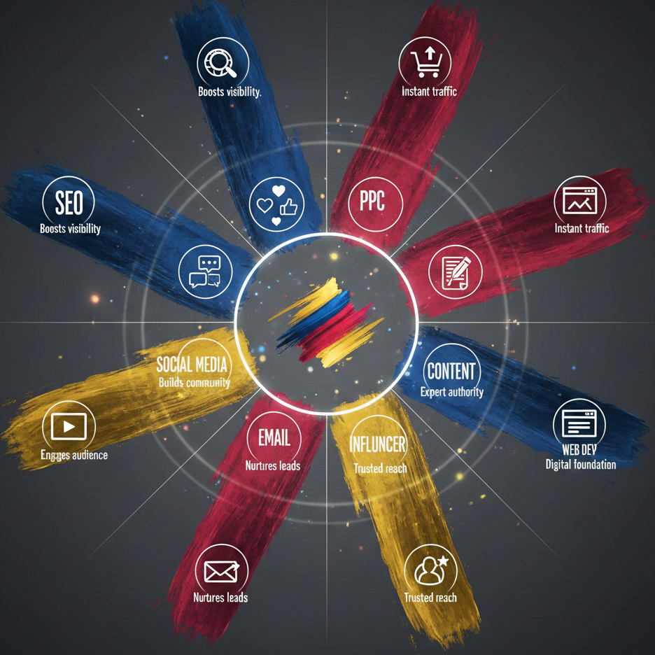 We provide complete digital marketing solutions including SEO, social media marketing, Google Ads, content marketing, email marketing, and website optimization. Our services are designed to increase visibility, traffic, and conversions. Each strategy is customized to match your business goals and audience.